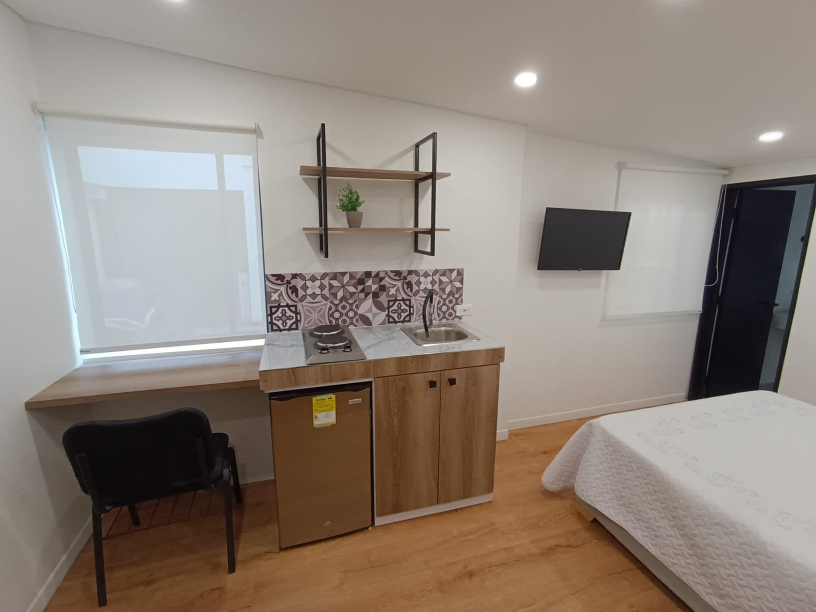 Te ofrecemos modernos apartaestudios tipo loft, totalmente amoblados, e independientes, todos cuentan con baño privado (agua caliente), smart tv, cocineta (con lavaplatos, estufa eléctrica y minibar), puesto de estudio o trabajo, los precios incluyen tarifa se servicios públicos, administración, tv por cable, internet de alta velocidad, derecho a lavandería (lavadora-secadora), cámaras de seguridad.