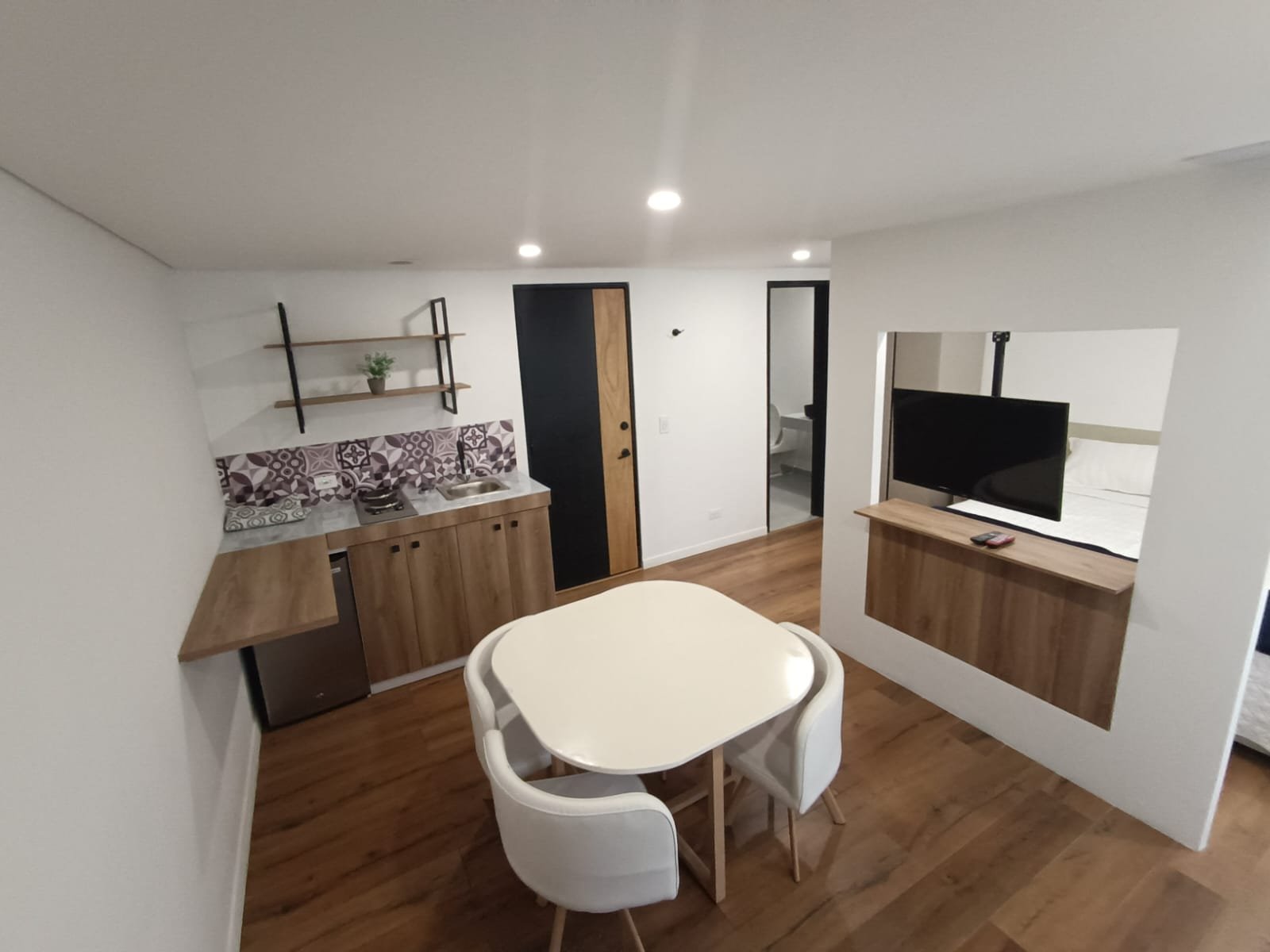 Te ofrecemos modernos apartaestudios tipo loft, totalmente amoblados, e independientes, todos cuentan con baño privado (agua caliente), smart tv, cocineta (con lavaplatos, estufa eléctrica y minibar), puesto de estudio o trabajo, los precios incluyen tarifa se servicios públicos, administración, tv por cable, internet de alta velocidad, derecho a lavandería (lavadora-secadora), cámaras de seguridad.